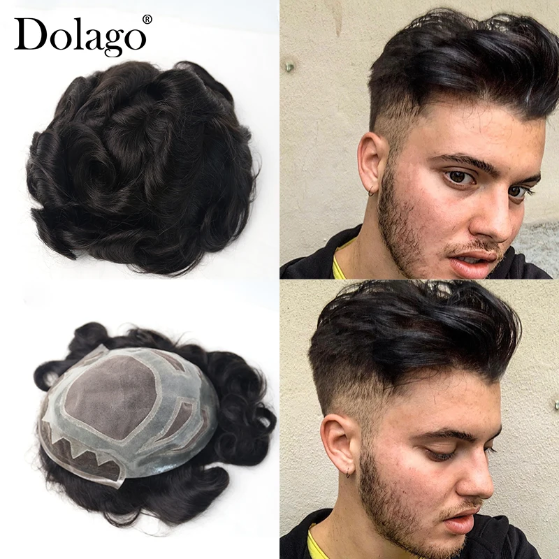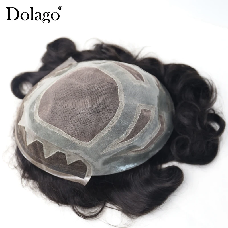 TOP 8X10"French Lace Front Mono Center Poly Perimeter Hair Replacement System Repacement Hair Prosthesi