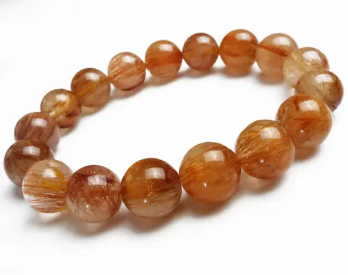 Review Top huij 001671 High Quality Natural Brazil Copper Hair Rutile Quartz Crystal Bracelet AAA 13 mm